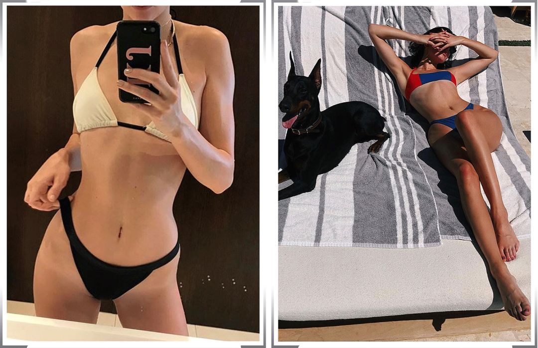 仗着好身材,肯豆的泳装look要义就是一个字:露!👇