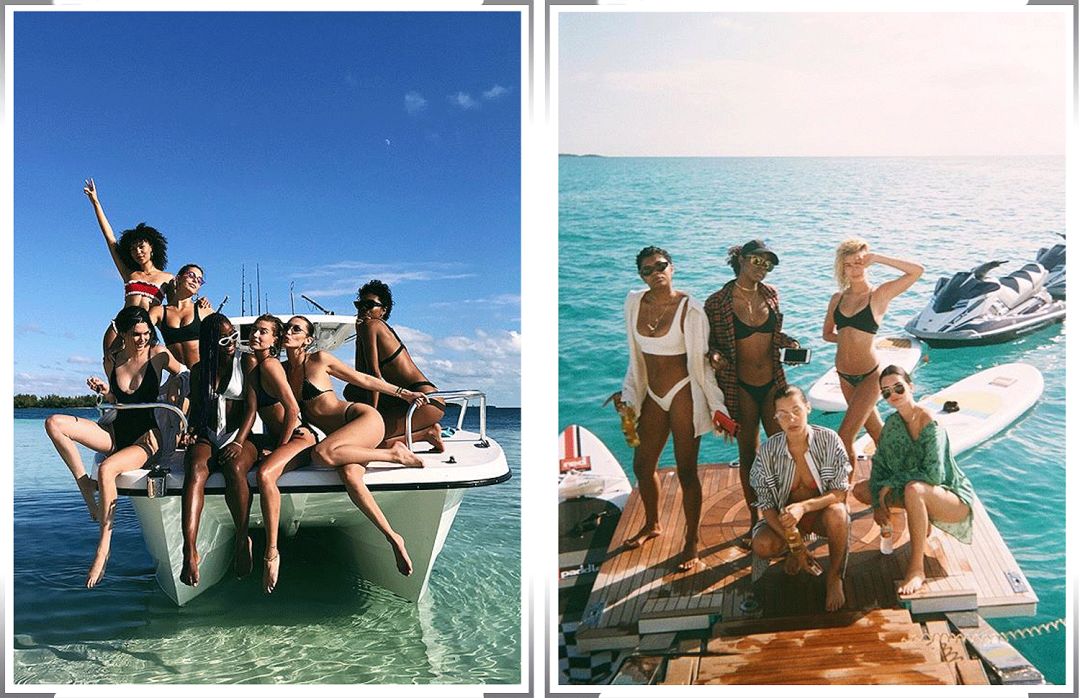最气人的是肯豆时不时就会拉上姐妹团一起出海,瞧瞧这一字排开的大长腿👇