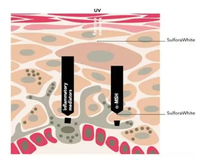 还好这款防晒的成分里头还富含具有强大抗氧化性的植物营养素SulforaWhite,能有效抑制黑色素生成,兼具了减少暗沉、提亮肤色的作用👇