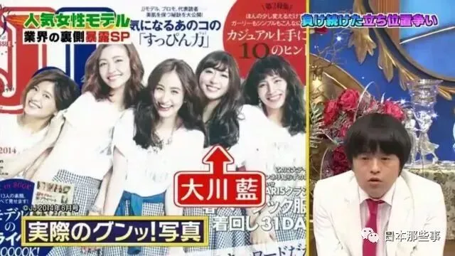 大川蓝说自己在站位上经常输,有次五个人的封面摄影时,自己站在正中间女孩的旁边,侧着肩膀。没想到最边上的女生也压自己的肩膀,她两肩都被挡着,能露出来的脸只剩一点,在心里默默流泪。