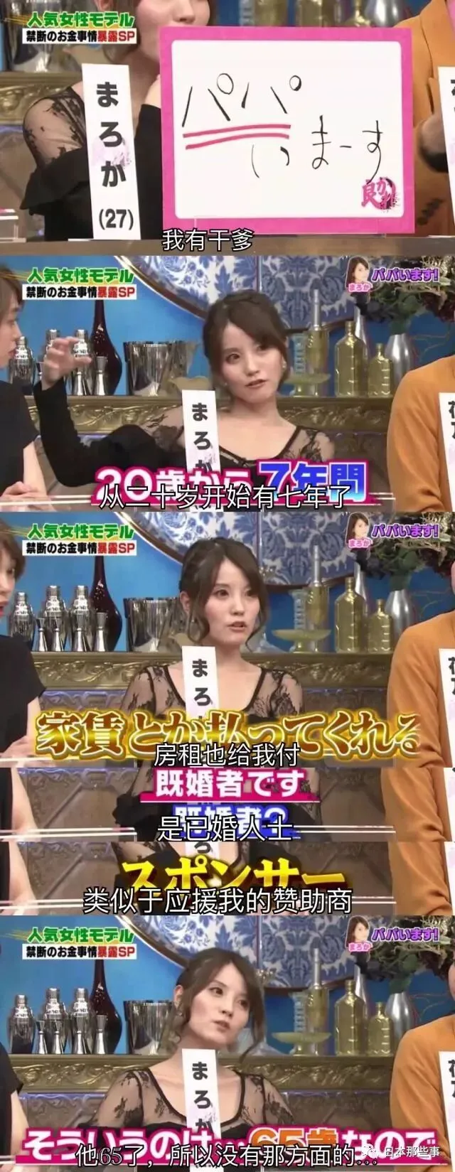 还有一位模特自曝自己有认干爹,但是不会做奇怪的事。那位干爹类似于自己的赞助商,会给自己付房租。