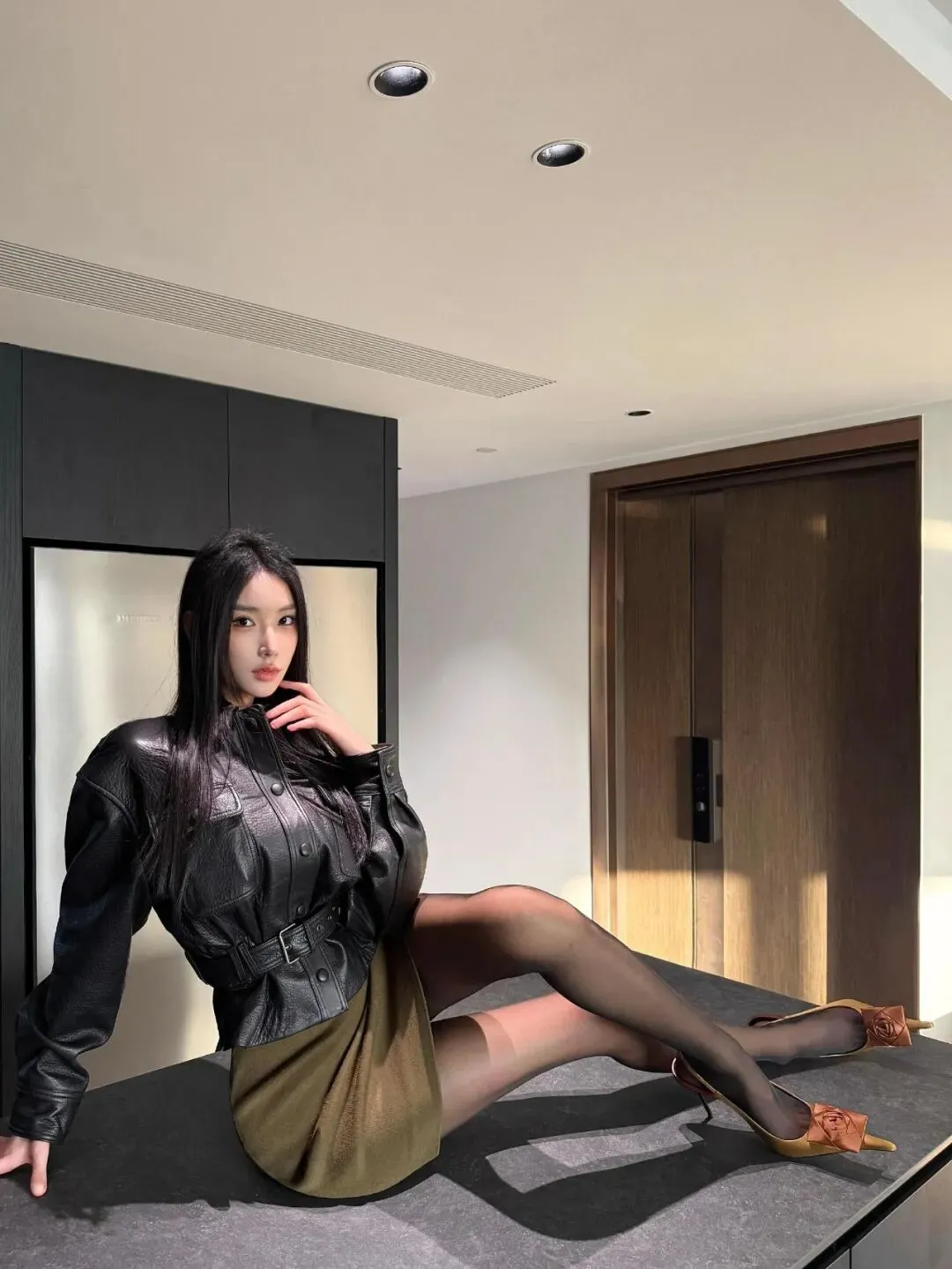 当前位置:首页>美女资讯>时尚模特,气质穿搭,皮衣包臀裙,纤腰黑丝大长腿