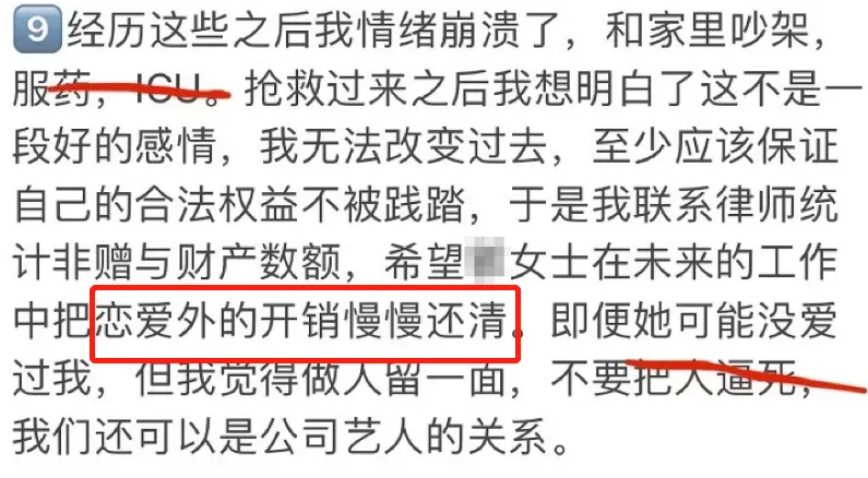 现在已经“清醒”的男主的诉求就是,希望小g可以归还恋爱以外的开销。