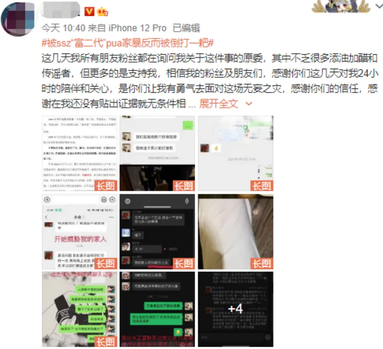 然后在“家暴”这点上,她表示自己说的是真的,不是“运动小癖好”,是真的家暴,富二代是一个有着暴力倾向的人(°ー°〃)。