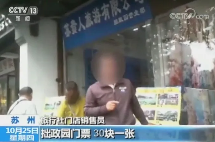 拙政园管理处的工作人员表示,“黄牛”和旅行社门店先以拙政园低价门票做诱饵,再趁机推销“捆绑销售”的多个景点,并将购物店伪装成景点藏于其中,诱骗游客参加“购物团”