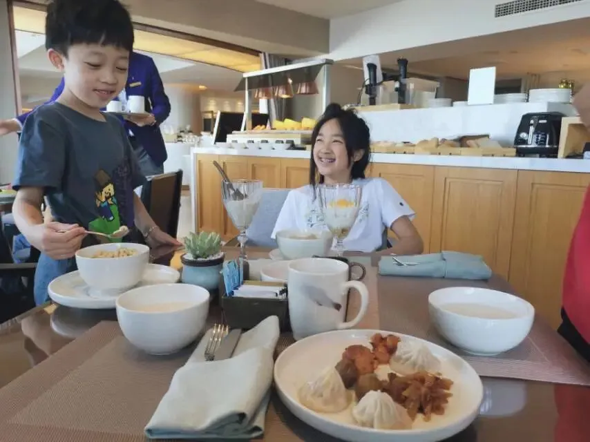 妍妍家的T恤可以闭眼入,贵有贵的道理。前阵子带姐弟去住波特曼丽思卡尔顿时,姐弟俩都穿过,可惜没有同框,这是我搭配的失误。(和姐姐同框时,弟弟穿的“我的世界”苦力怕T恤,下文会介绍,别着急)