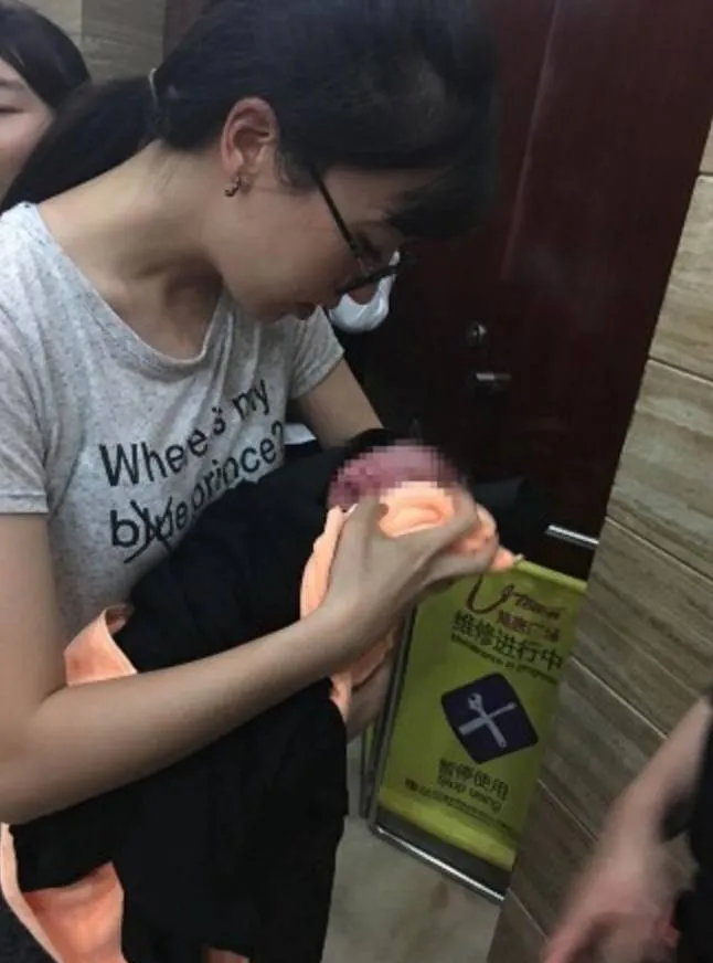 当天在跟朋友逛街的王子惠走到商场地下一层时,看到有人围在卫生间门口,进去发现,一名初生婴儿正悬在一名产妇的身下。王子惠:“当时产妇就弓着身子站在厕间内。