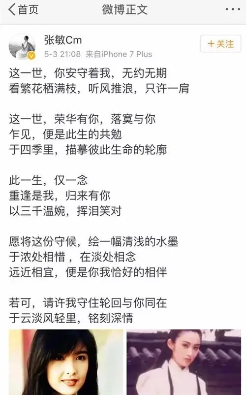 后来到半夜,张敏又发了一条类似“澄清”的微博,并附上了周慧敏前段时间和老公倪震秀恩爱的照片。