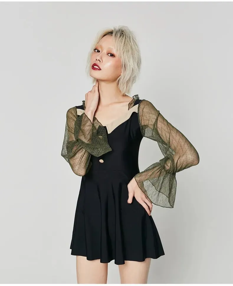 demonlolita的泳衣以黑色为主,偶尔用白色花边作为点缀,简约不平庸~