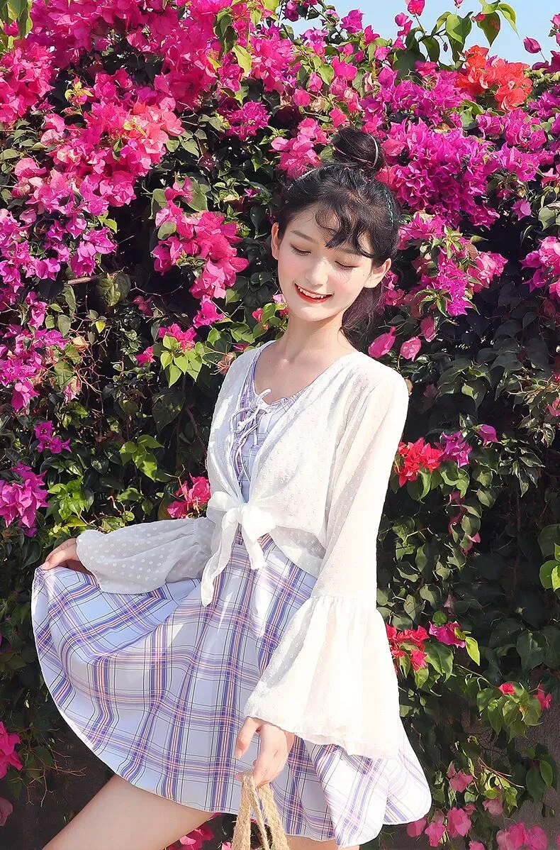 风格都是偏甜妹的学院派,而且布料超多,既能遮肉又能防晒~