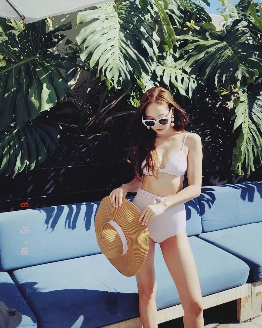 ins时尚博主Carin热衷分体泳衣,每次泳装造型都十分吸引眼球。