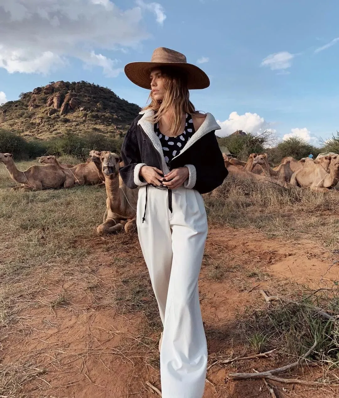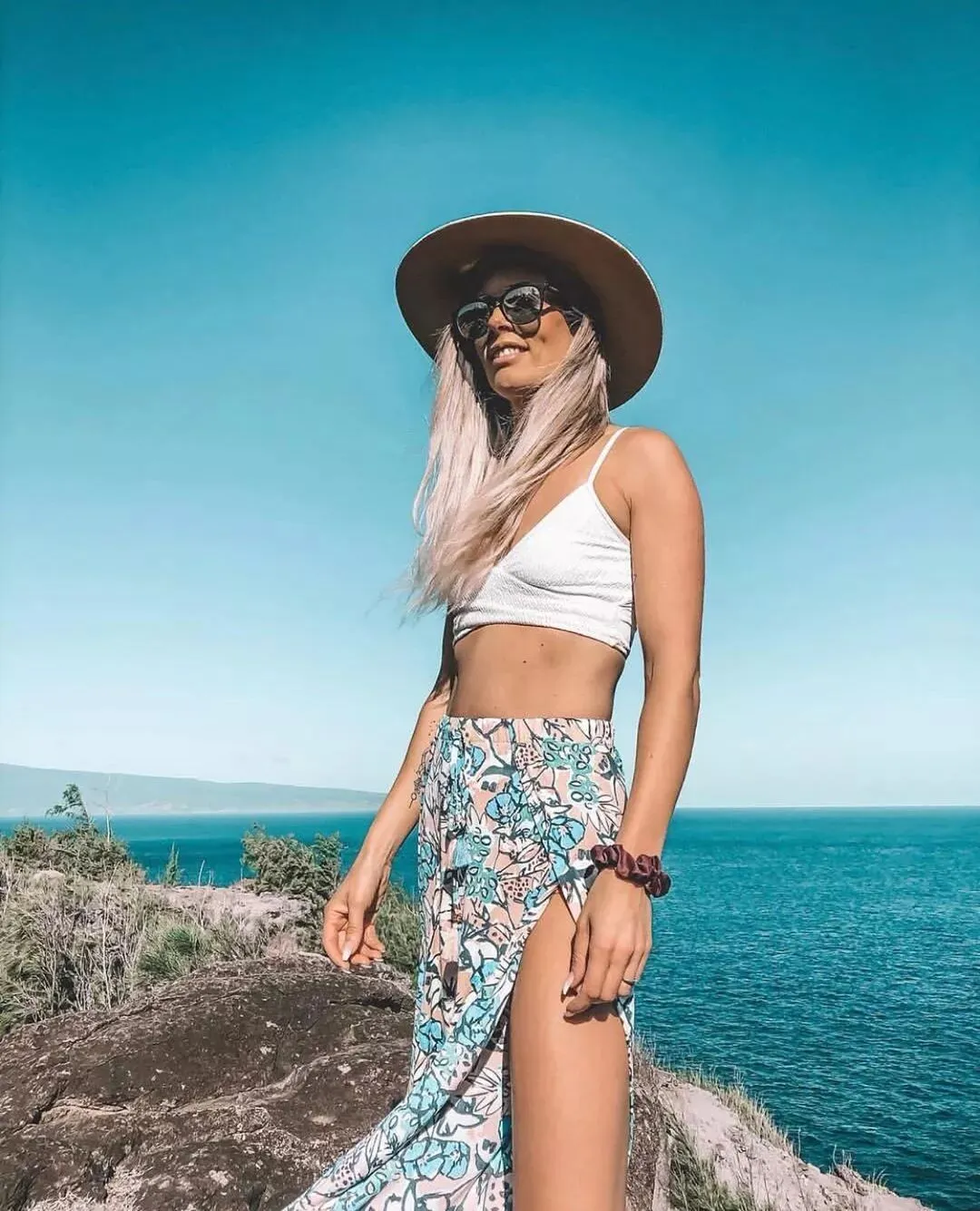 这种穿法最适合微胖妹子,不会过于暴露又带点复古新潮style,超适合度假拍照~