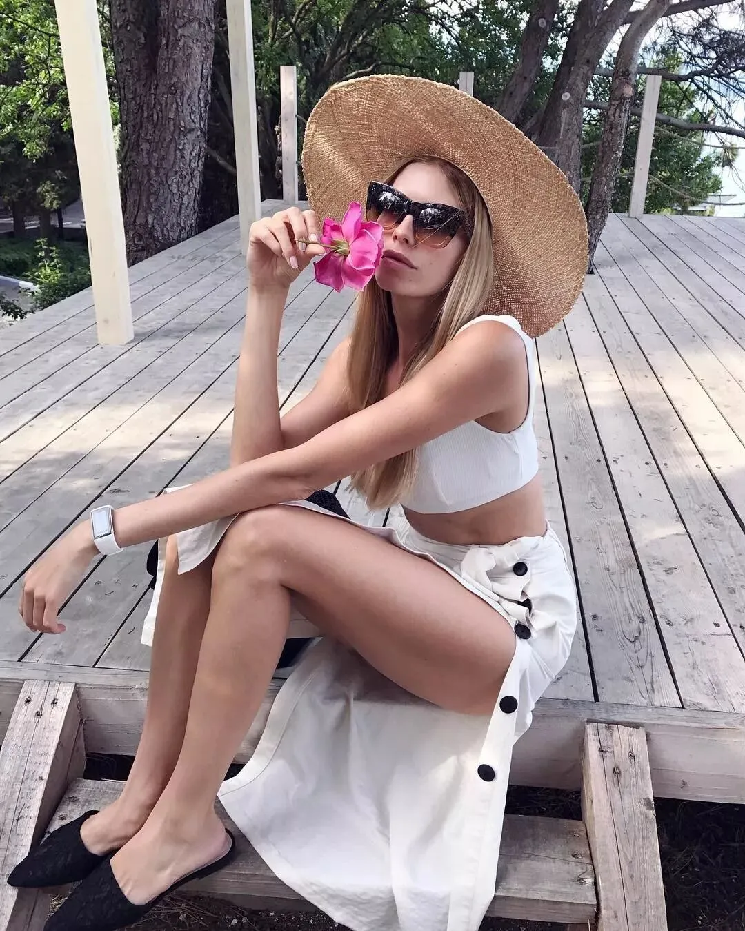 手拿竹竿草编包,jio穿驼色凉鞋,再戴上手表、金属配饰,满屏的高质感度假风!