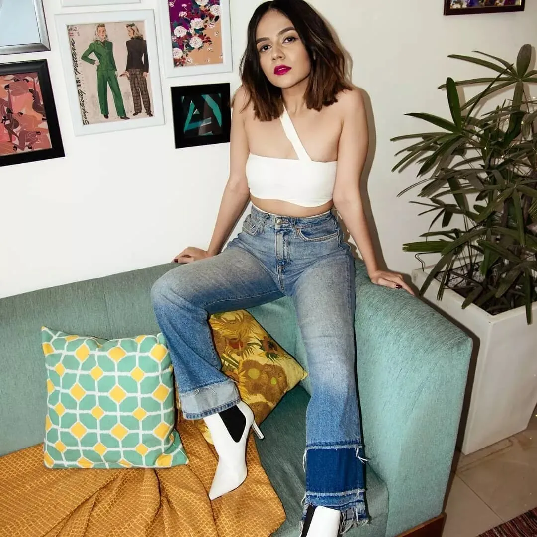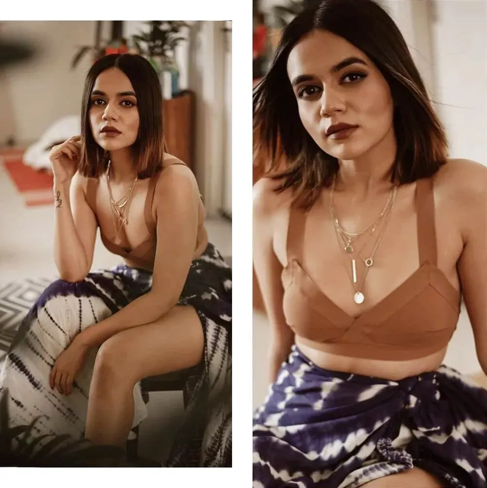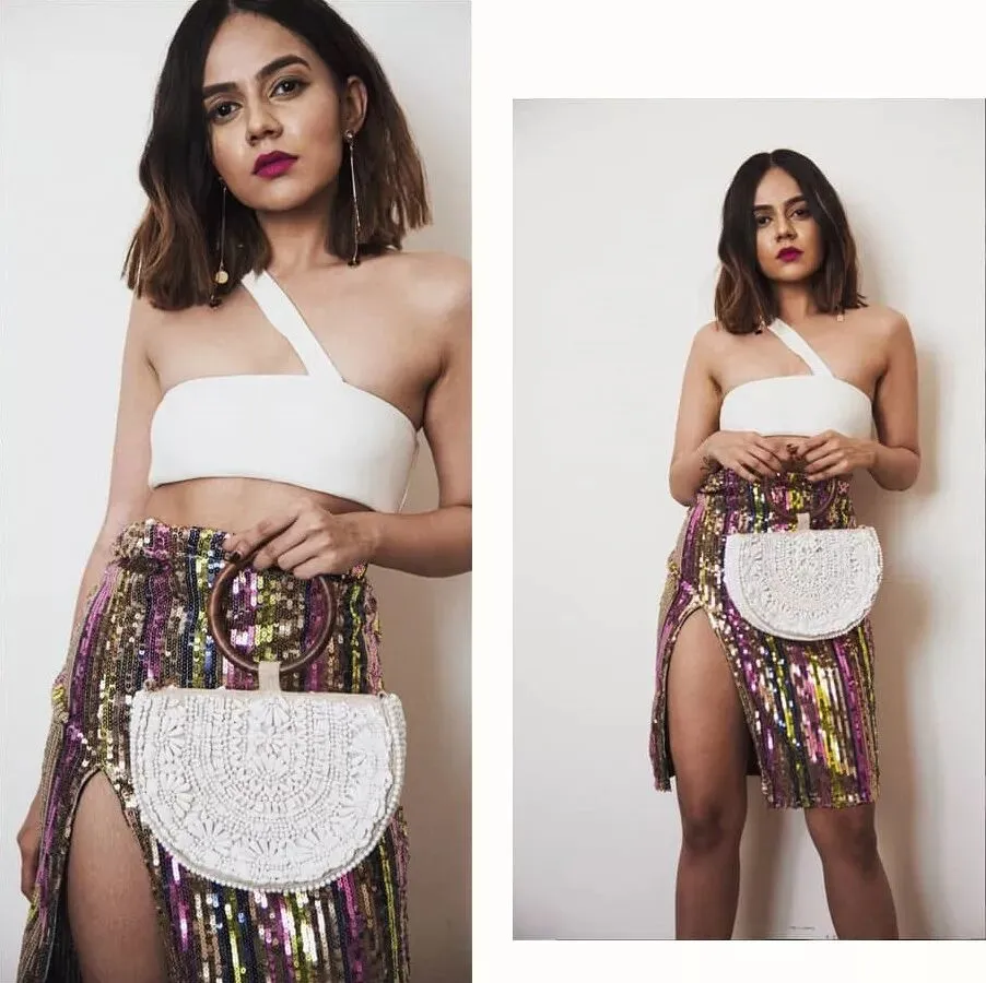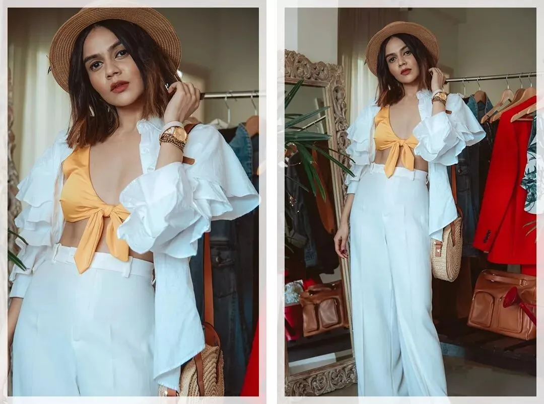 当然不一定非要白色,军绿色开叉裙配单肩泳衣,就显得高贵又典雅。印度时尚博主Komal Pandey就是很好的例子!