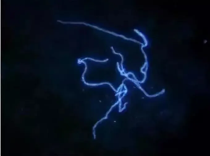 真菌荧光检查:可见真菌菌丝和孢子