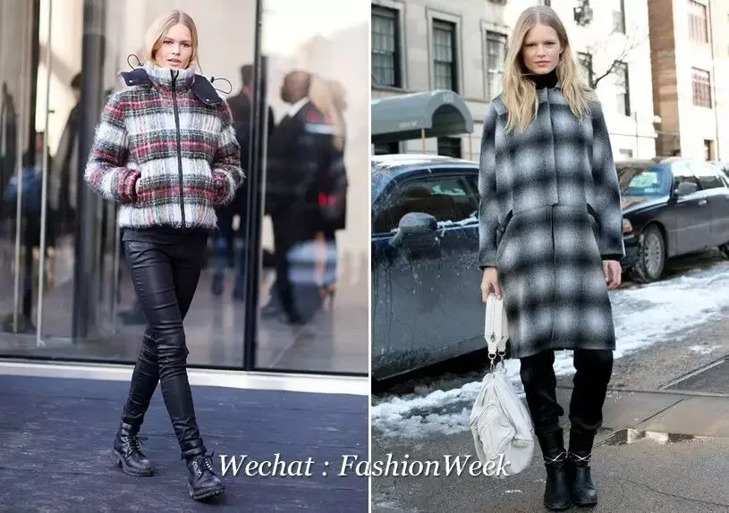 淑女气质装备格子毛呢外套穿在她身上略显冲突,但是没冲突怎么有时髦呢?中性调调也可以主要看气质。
