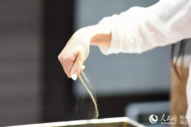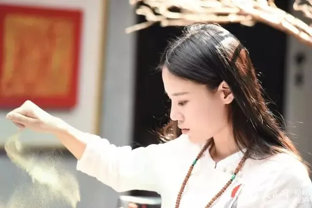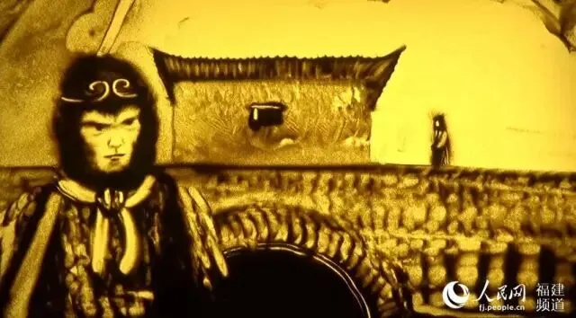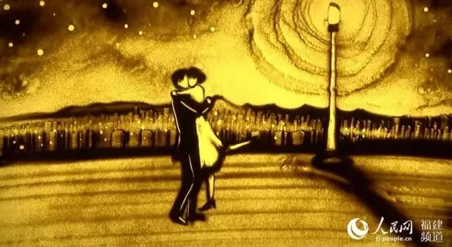 普通的一捧黄沙,到了邓瑜康的手里,就变成了“金”沙。手指翩然划过,一幅《战狼2》的画面便跃然而出。随后,手指一推一抹间,《爱乐之城》中艾玛·斯通和瑞恩·高斯林在夜色下跳踢踏舞的一幕也一一成型。最后,她抓起一把细沙,从高空均匀撒下。一时间,淡淡寒风中,紫霞仙子水汪汪的渴望眼神,至尊宝默默离去的背影,消失在黄昏下……