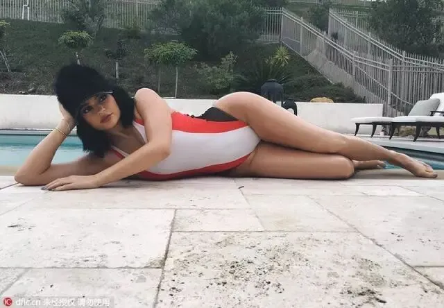身穿连体泳衣的金小妹Kylie Jenner不仅显得凹凸有致,更增添了几分别样的摩登韵味。