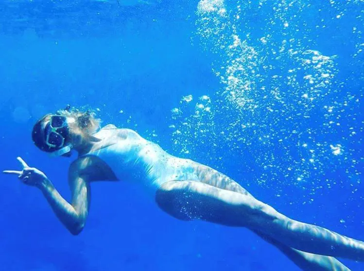 卡纳莉斯Instagram秀泳衣照,今年的流行色草木绿又“光宗耀祖”了一回!