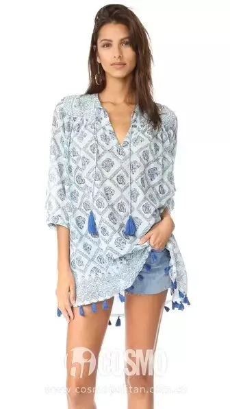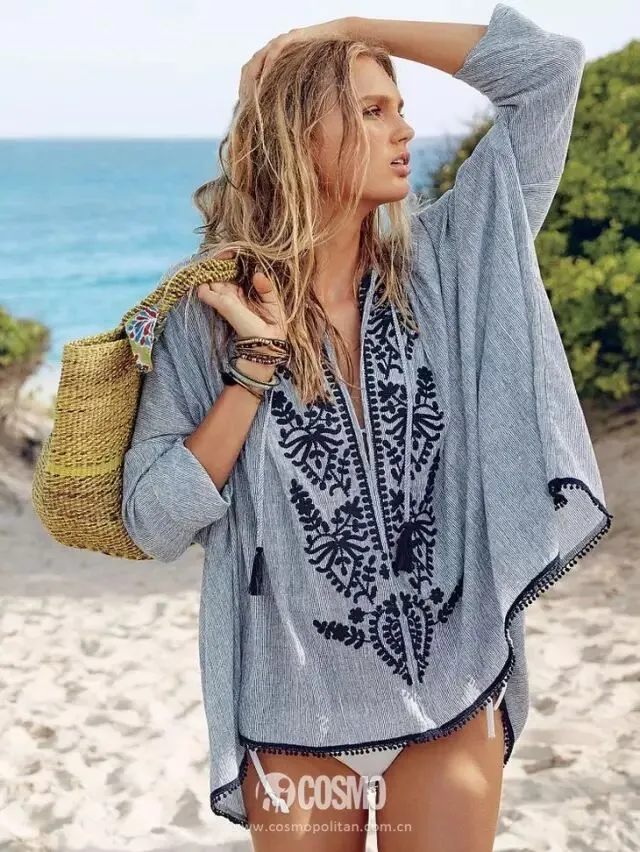 在泳衣外套一件民族风的罩衫就更适合不过了,再搭配一只草编包包,满满的异域风情~