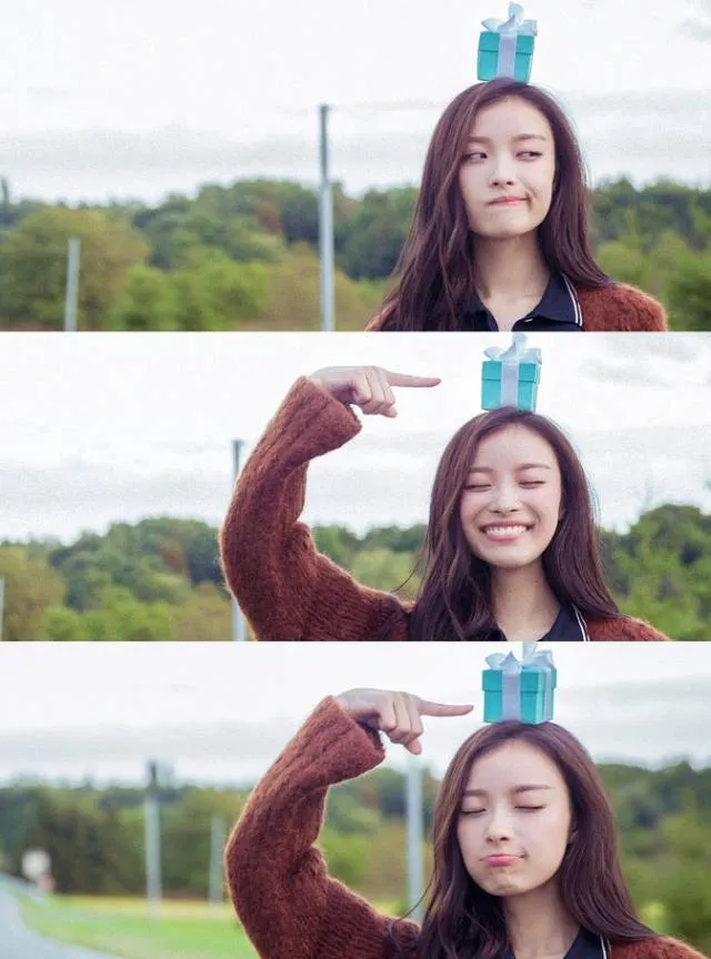 她喜欢摆出各种搞怪的表情,享受当下的快乐时光。