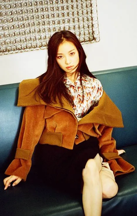 她也可以在复古胶片镜头下摆出游离的姿态。