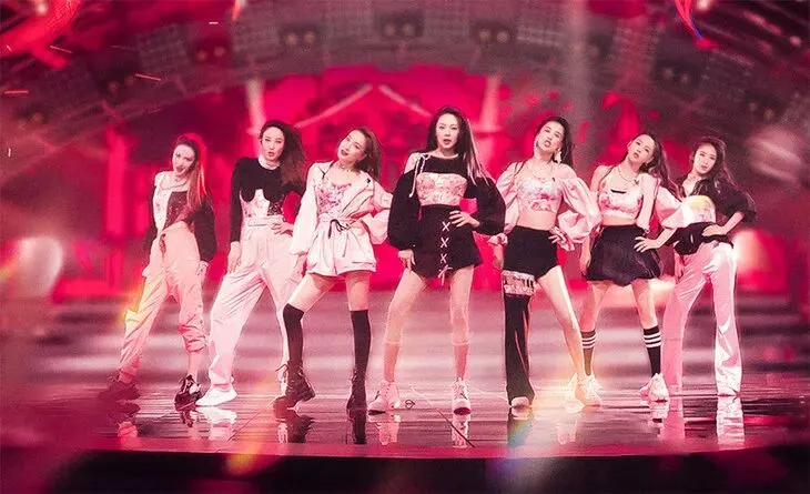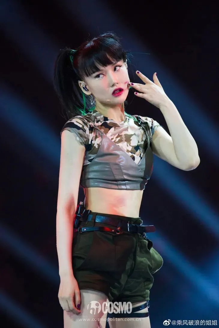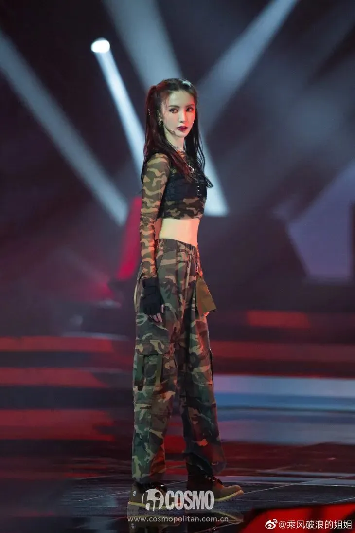 接下来是《新物种》五人组,这次全员露脐装+迷彩服,潮酷十足。