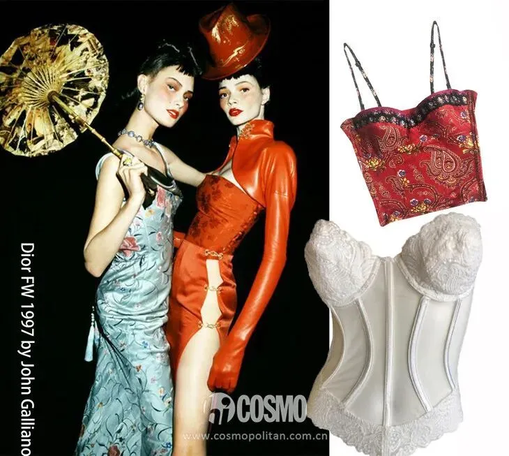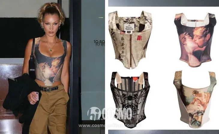 这种带鱼骨的紧身胸衣穿上身之后整个人看起来复古又高级,仿佛重回中世纪时代。Bella Hadid 穿的Vivienne Westwood胸衣喜欢把油画放在胸衣上,有浓厚的复古哥特气息,COCO还是蛮推荐的。