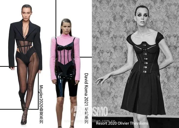 而如今它又流行回来了,在2020春夏趋势中,紧身胸衣的流行尤为吸引瞩目。Burberry、Louis Vuitton、Mugler、Olivier Theyskens、David Koma等时装品牌都相继推出了相关单品,而且COCO觉得这股风潮还要夯上一段时间。