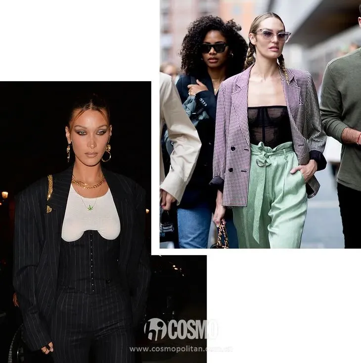而且别看紧身鱼骨胸衣看起来比较浮夸,它的可驾驭度程度很高。搭西装性感有女人味,和运动服叠穿有种反差时髦感。