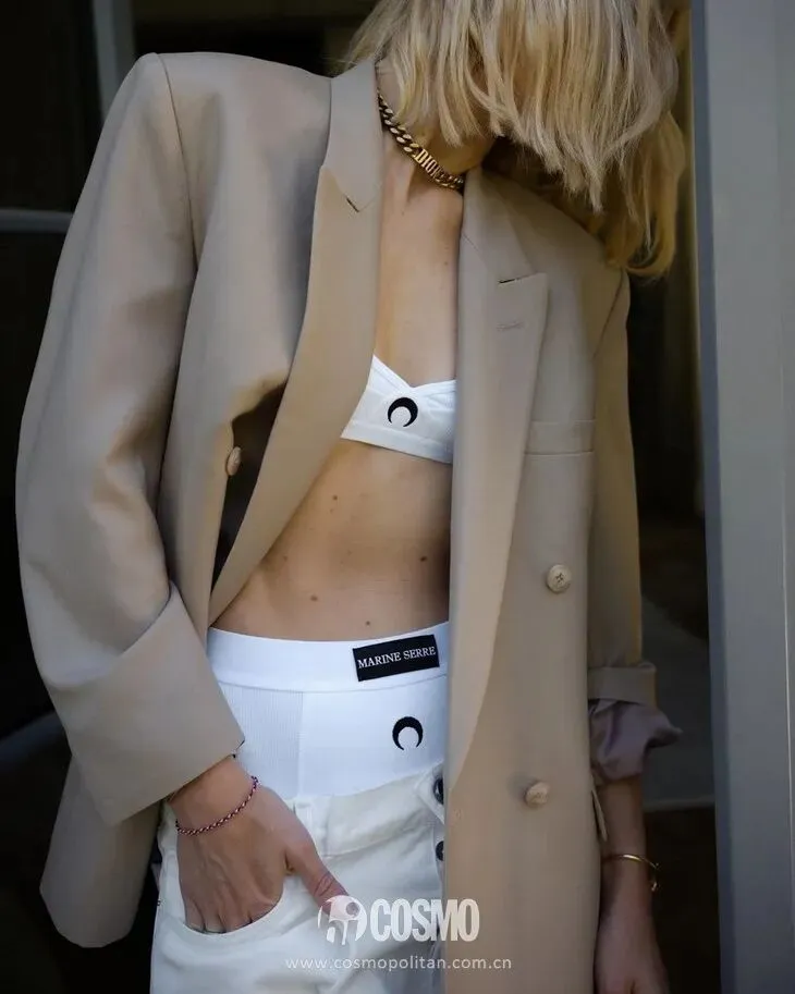 搭配黑西装很撩人,白or米色西装也很可!经典黑白配是最凸显大女人气质的配色,即使里面穿运动型内衣也可以优雅知性有气质。
