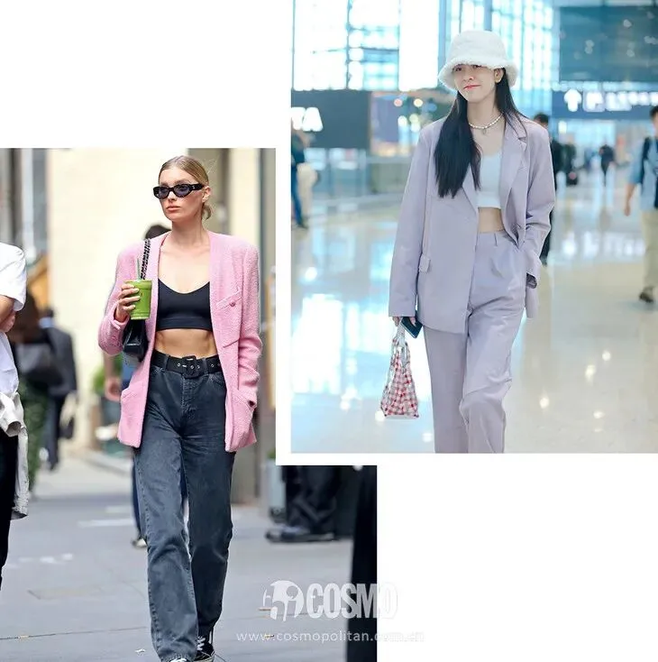 运动内衣搭配黑西装外套不仅毫无违和感,反而能衬托独特女人味,可御姐可性感,难怪时髦精都爱穿。
