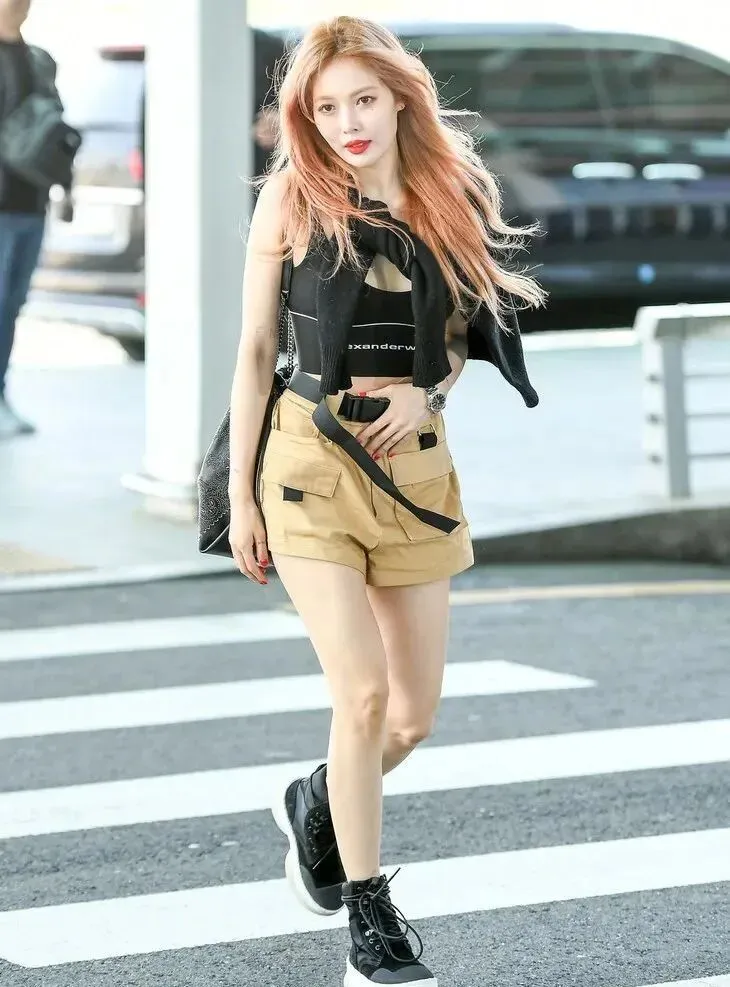 好身材如你完全可以copy姐姐的穿法,直接将运动内衣当成短款背心来穿。简单配短裤,这夏日街头风扑面而来。