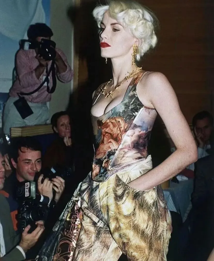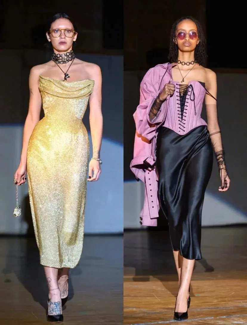 Vivienne将紧身胸衣穿法革新,“内衣外穿”的方式在当时也足够大胆。这也使得其在时装界独树一帜,也成为了品牌重要的元素之一——由胸衣演绎的时尚盔甲。