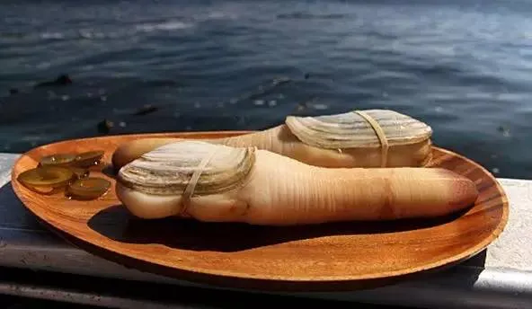 象拔蚌这样的大型蚌类,贝肉都十分耐嚼有韧劲,加之象拔蚌口感尤其清甜可口,实在是一种难能可贵的高级贝类。不过象拔蚌的风靡并不仅仅因为美味,还因为雄浑的外形给人以心理暗示和无限遐想,东亚人的传统认同里本就存在这种“以形补形”的思路,所以象拔蚌尤其受到亚洲食客的推崇。