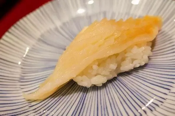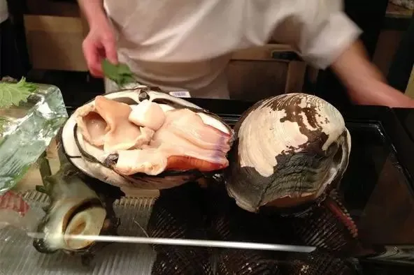 日本女神蛤在日料中也属于高级贝类,寿司店里的象拔蚌通常就是它,肉质丰盈,弹性极好,很难捏成寿司,所以十分考验寿司职人的功力。