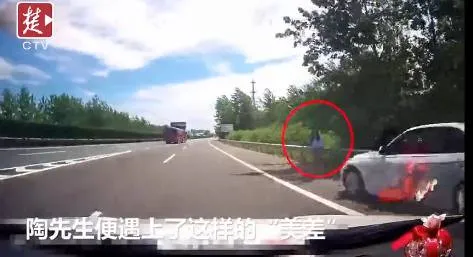 陶先生近日开车行驶至京港澳高速武汉南出口附近,旁边应急车道上,一名衣着时尚的年轻美女站在一辆白色宝马车旁,焦急地挥手拦车。