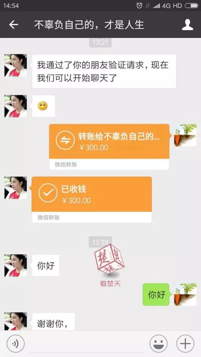 陶先生心想,美女开着宝马车,衣着得体,说话诚恳急切。也就两三百块钱的事,就放松了警惕,加了对方微信好友,转给她300元钱。美女在微信中说了“谢谢”。