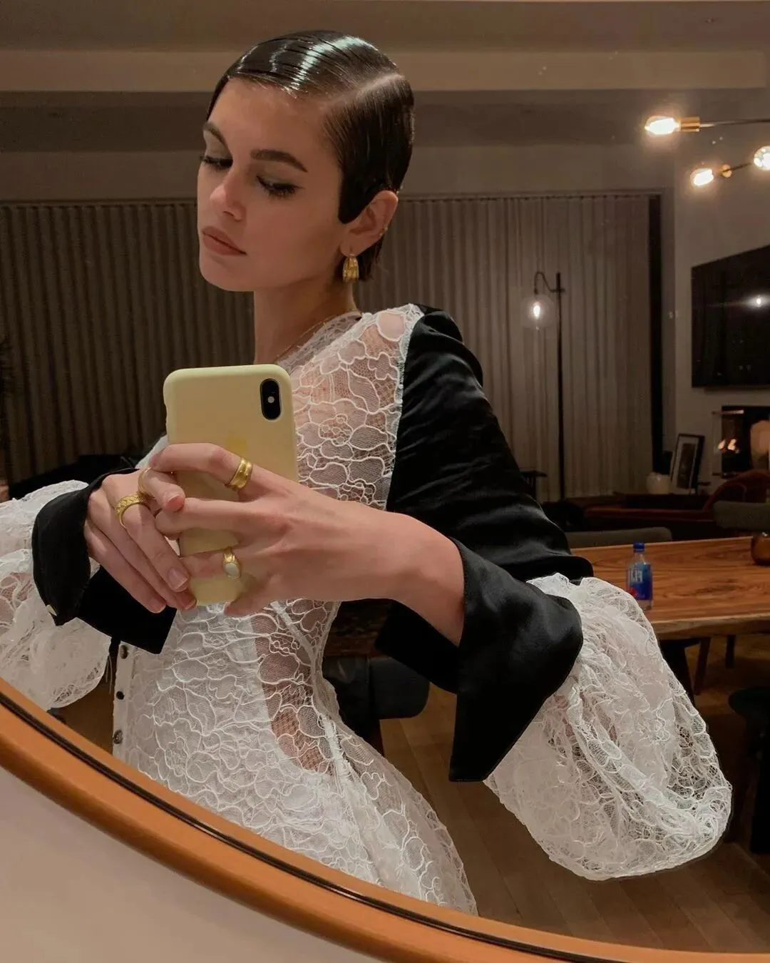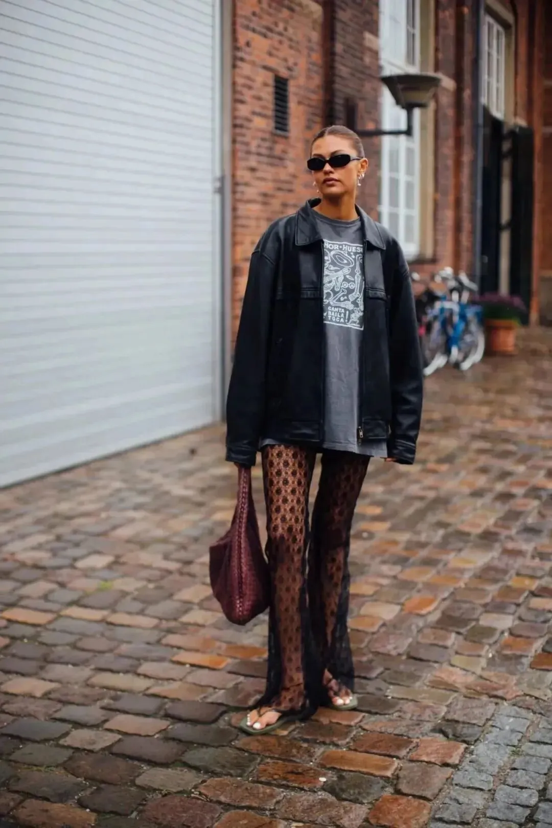 就如前面提到过的,蕾丝与皮革的组合可以说是柔软与硬朗的完美融合。蕾丝上衣展现了女性的柔美和细致,而皮裤则带来了一种都市、前卫的感觉。