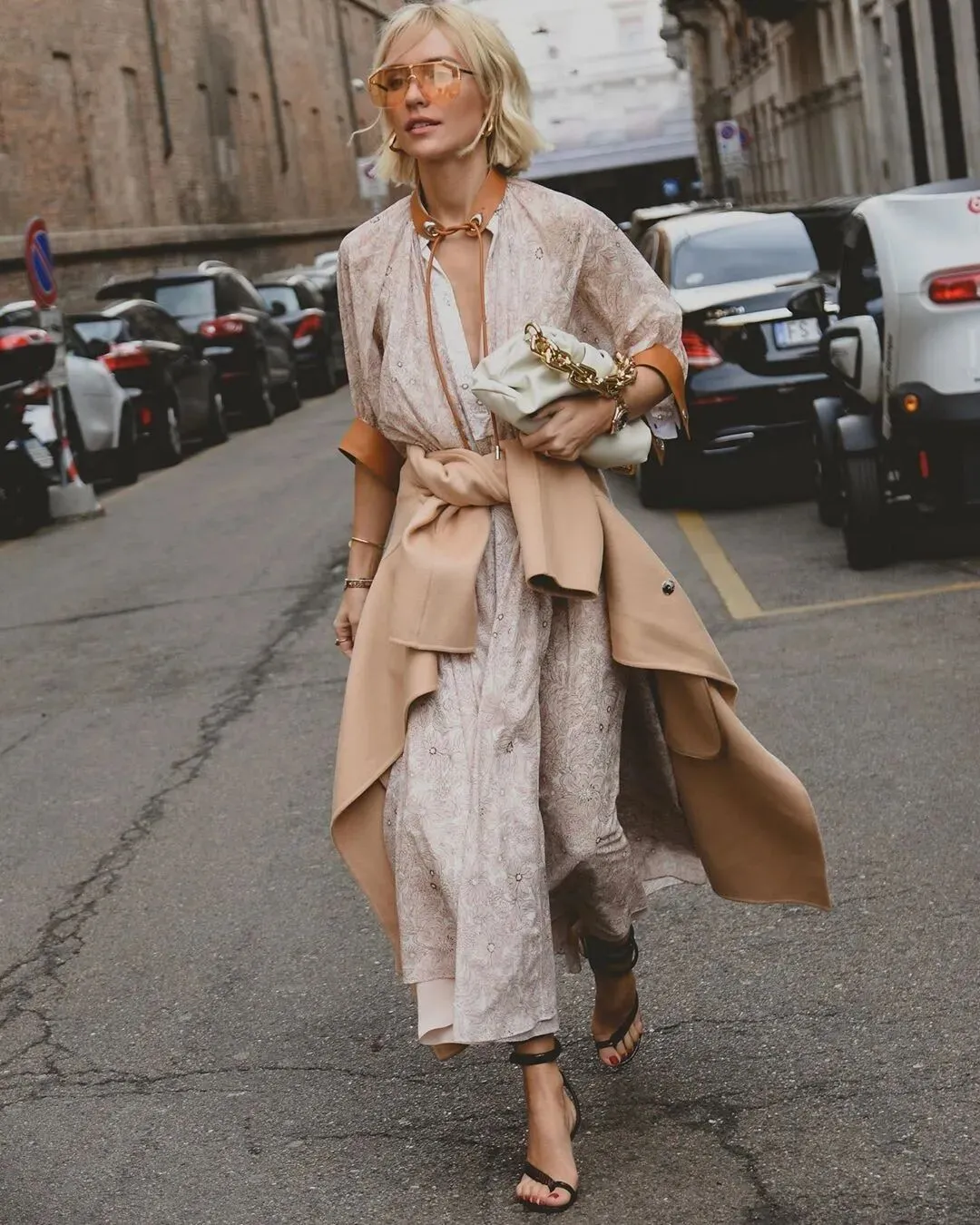 尤其是在秋天,这种搭配更是能带来温暖的同时,也带有一丝性感与神秘。这里推荐偏向实用主义的搭配,用运动鞋或者拖鞋作为给整体带来日常感的重要单品。