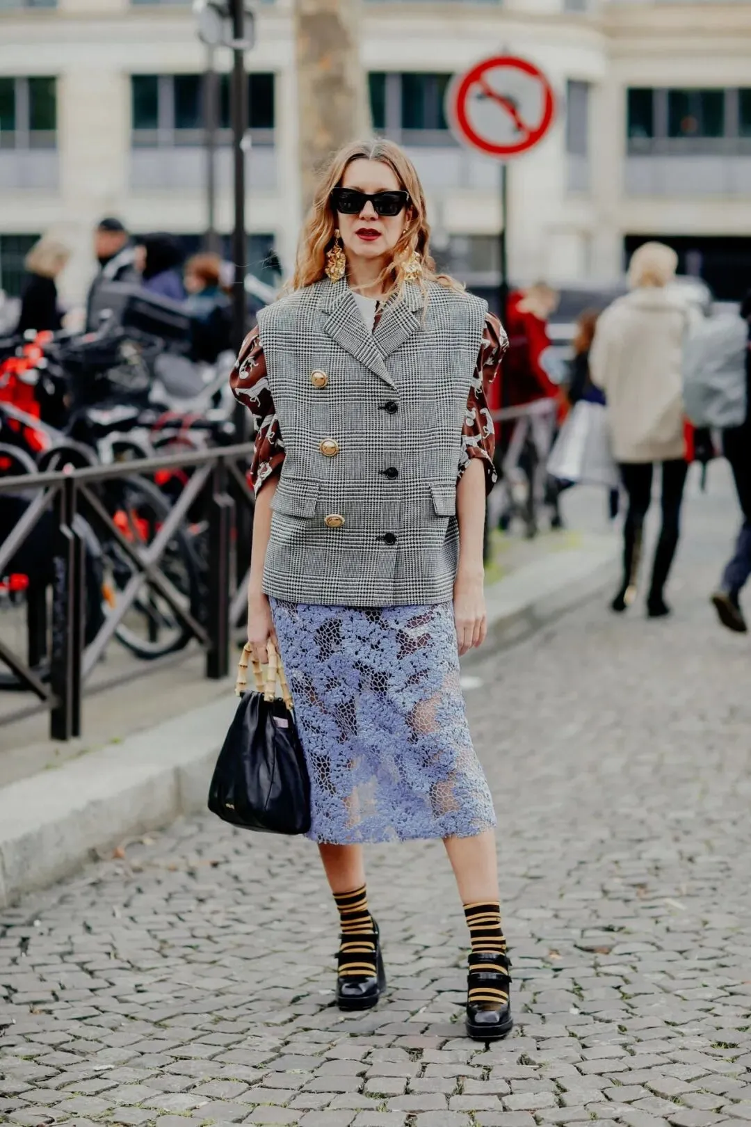 蕾丝裤袜,是今年秋季相当红火的单品。当它与西装外套相碰撞,像是为正式的西装注入了一丝嬉皮笑脸。
