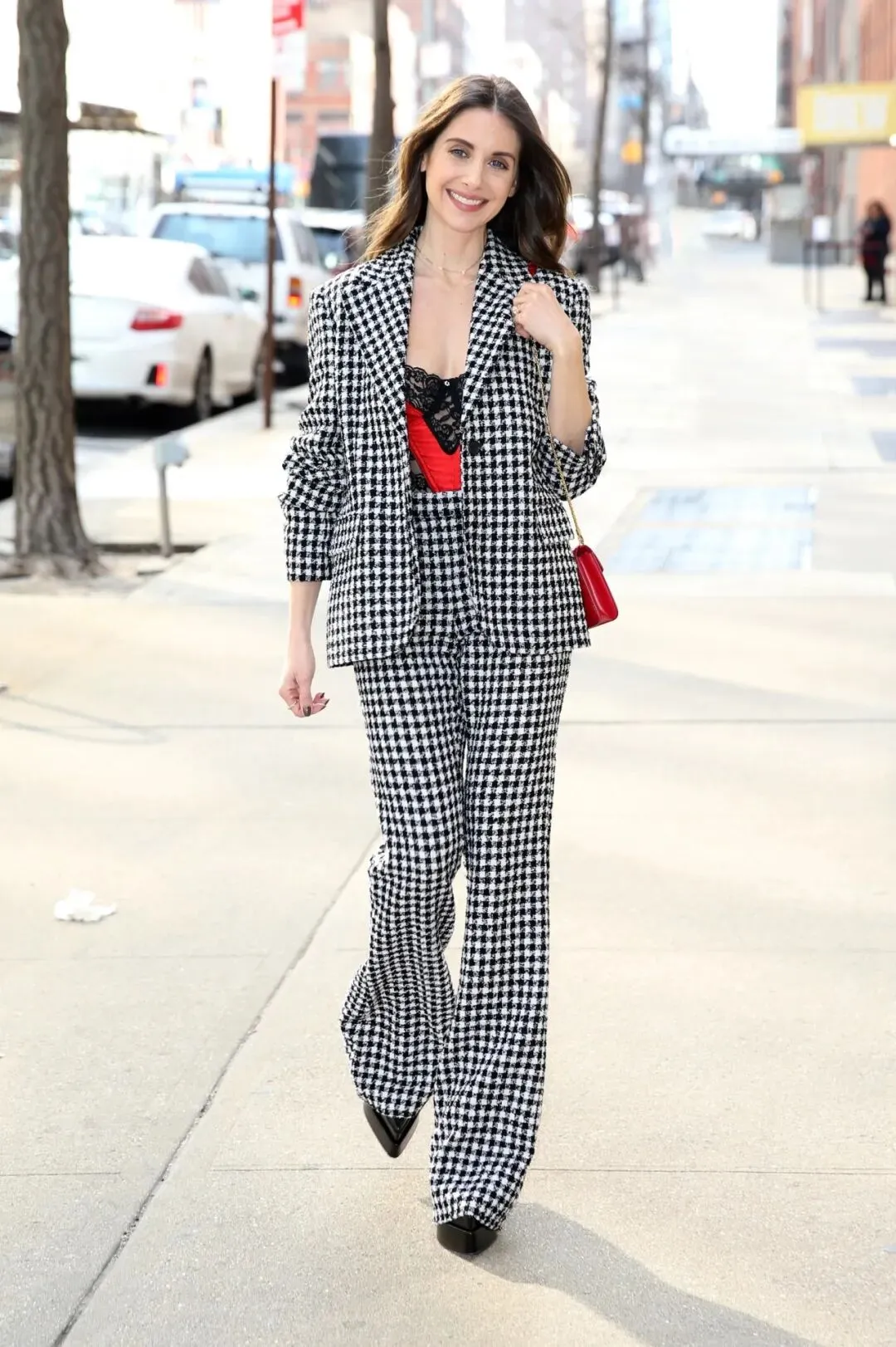 把浪漫的蕾丝上衣藏在西装外套下,更能够凸显出蕾丝若隐若现的美。这种搭配是对于传统商务穿搭的一次颠覆,将女性的柔情与商务的冷酷完美融合。