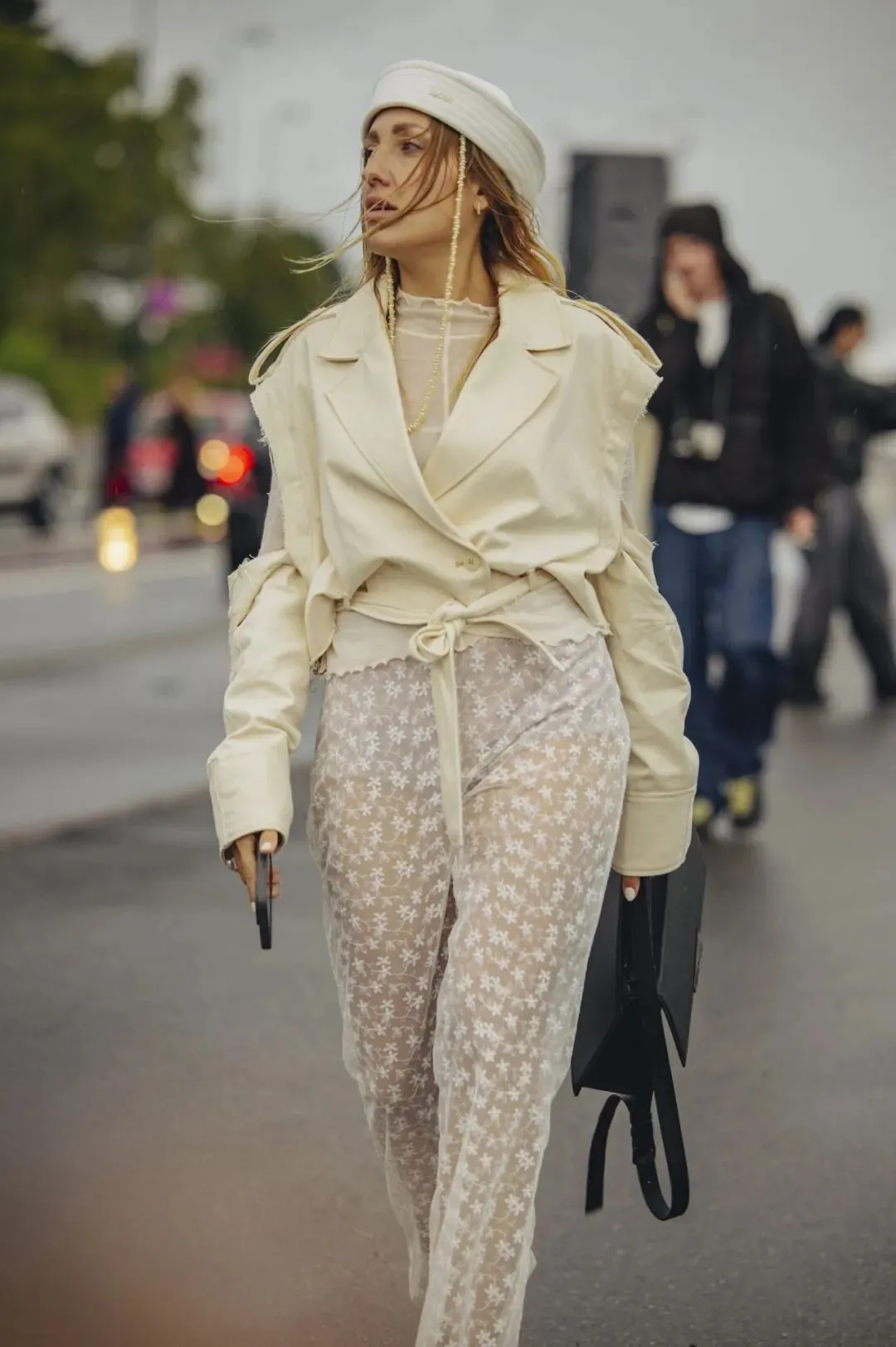 而外套的材质,无论是羊毛还是防风材质,都与蕾丝产生了有趣的互动。