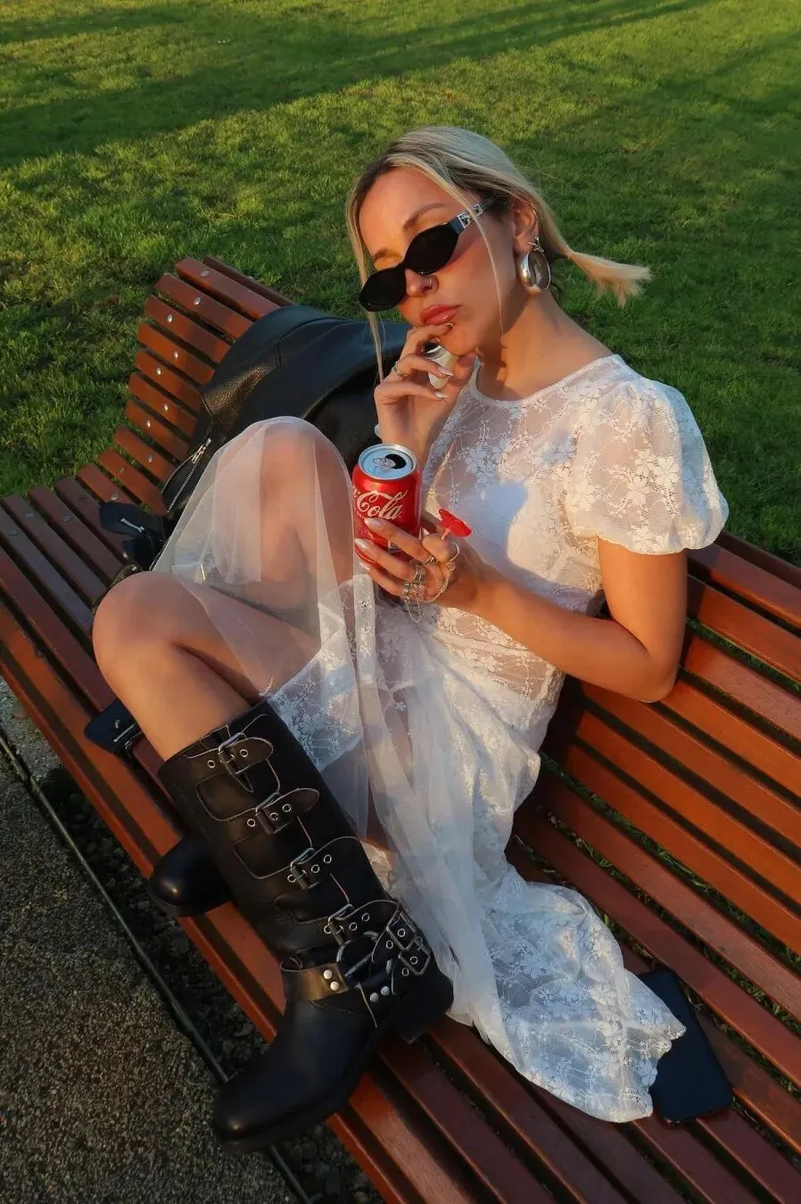 短靴,总是给人一种活力与青春的感觉。与蕾丝连衣裙的搭配,仿佛是甜美少女与都市女性的交融。黑色短靴为蕾丝连衣裙增添了一份随性与率真,不再是单纯的甜美,而是多了几分都市感与大胆尝试。饰品方面,考虑选择一些精致的银饰或皮带,增强这种自由与随性的搭配风格。