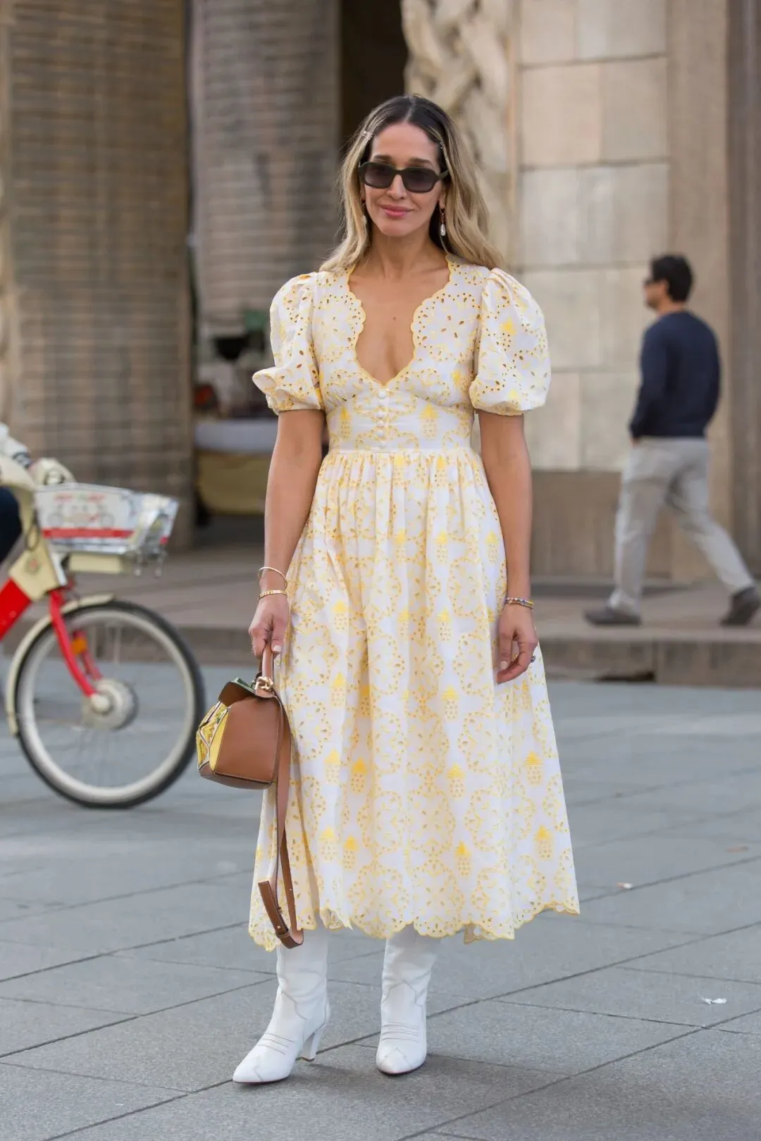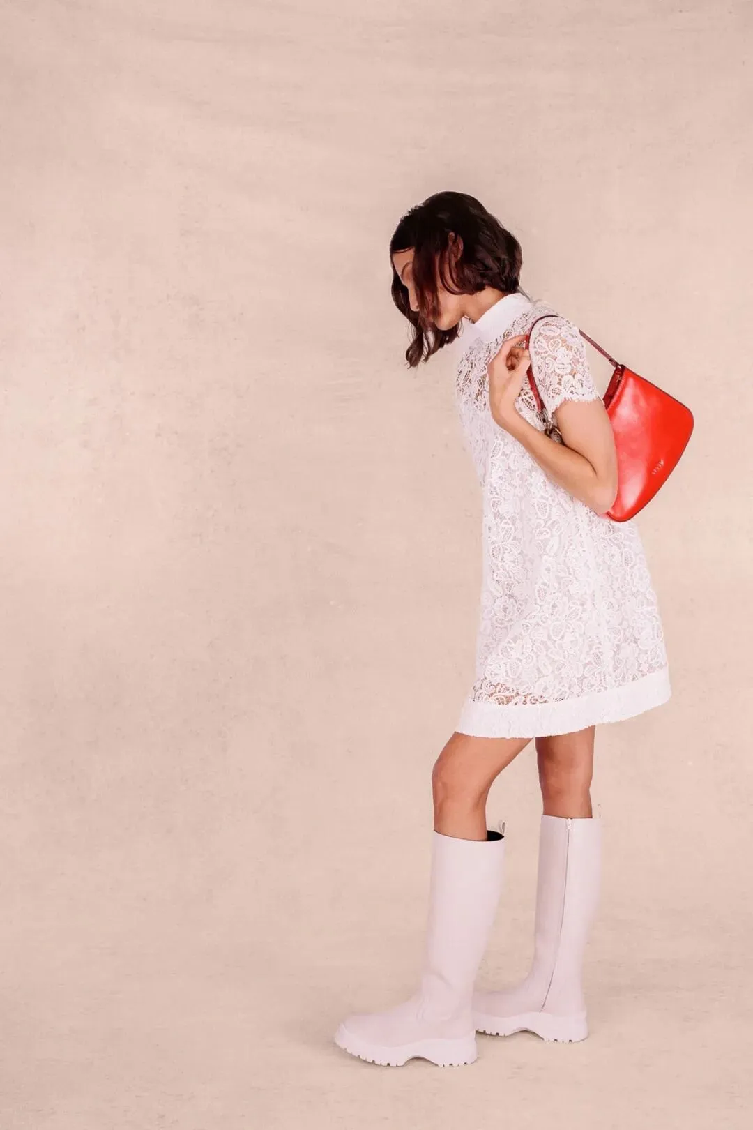 为了强调这种浪漫与清新的感觉,可以选择一些淡色的饰品或者包袋,与连衣裙和靴子形成和谐的色彩呼应。