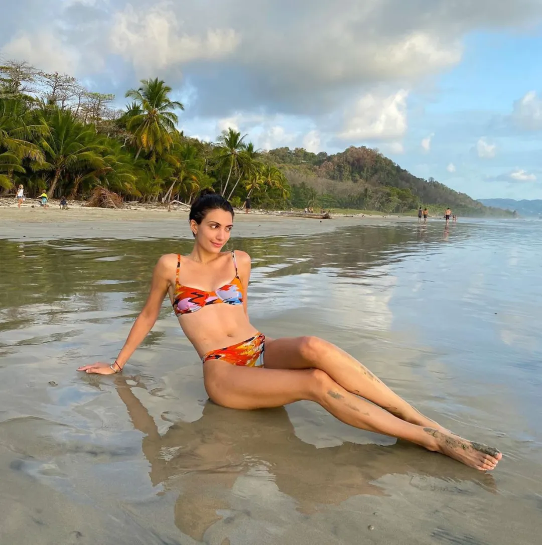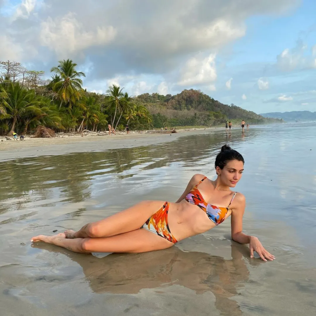下面 Sabina Socol 穿的这件分体的花朵泳衣,来自悉尼的一个小众泳衣品牌 Ephemera