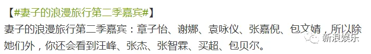 相信大家刷微博的时候都看到了,网曝《妻子的浪漫旅行》第二季开拍,这一季的嘉宾有章子怡、谢娜、袁咏仪、张嘉倪和包文婧。