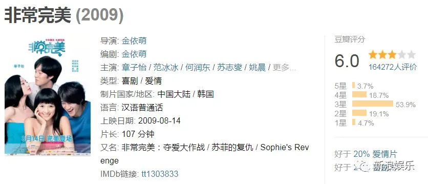 后来大家也看到了,《非常完美》反响一般,豆瓣评分刚刚及格。