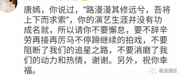 就有粉丝对唐嫣说,希望她婚后不要懈怠,要继续马不停蹄拍戏,不要消磨粉丝的动力和热情。