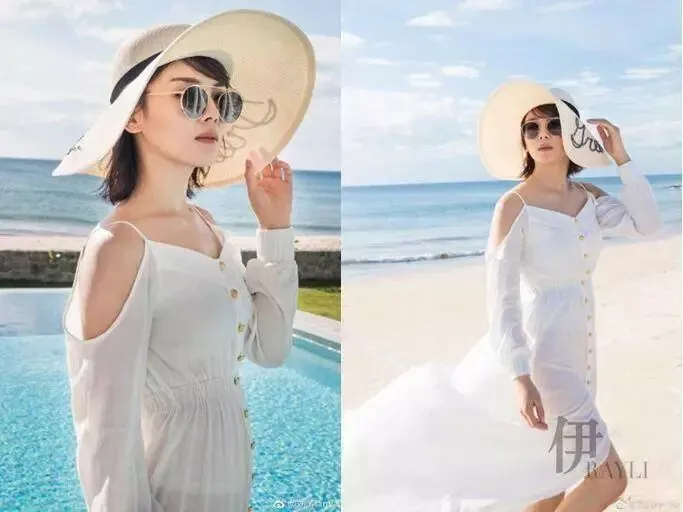 另外一套白色连衣裙的露肩设计有一些小性感,